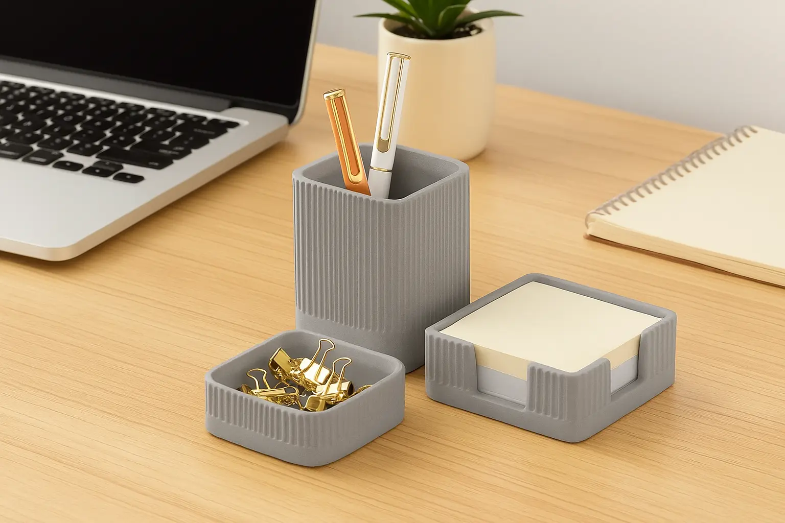 Crafted from premium concrete with a minimalist painted finish, the set blends seamlessly with any office décor — be it classic, industrial, or contemporary. Each piece is designed to last, offering both visual appeal and practical durability.