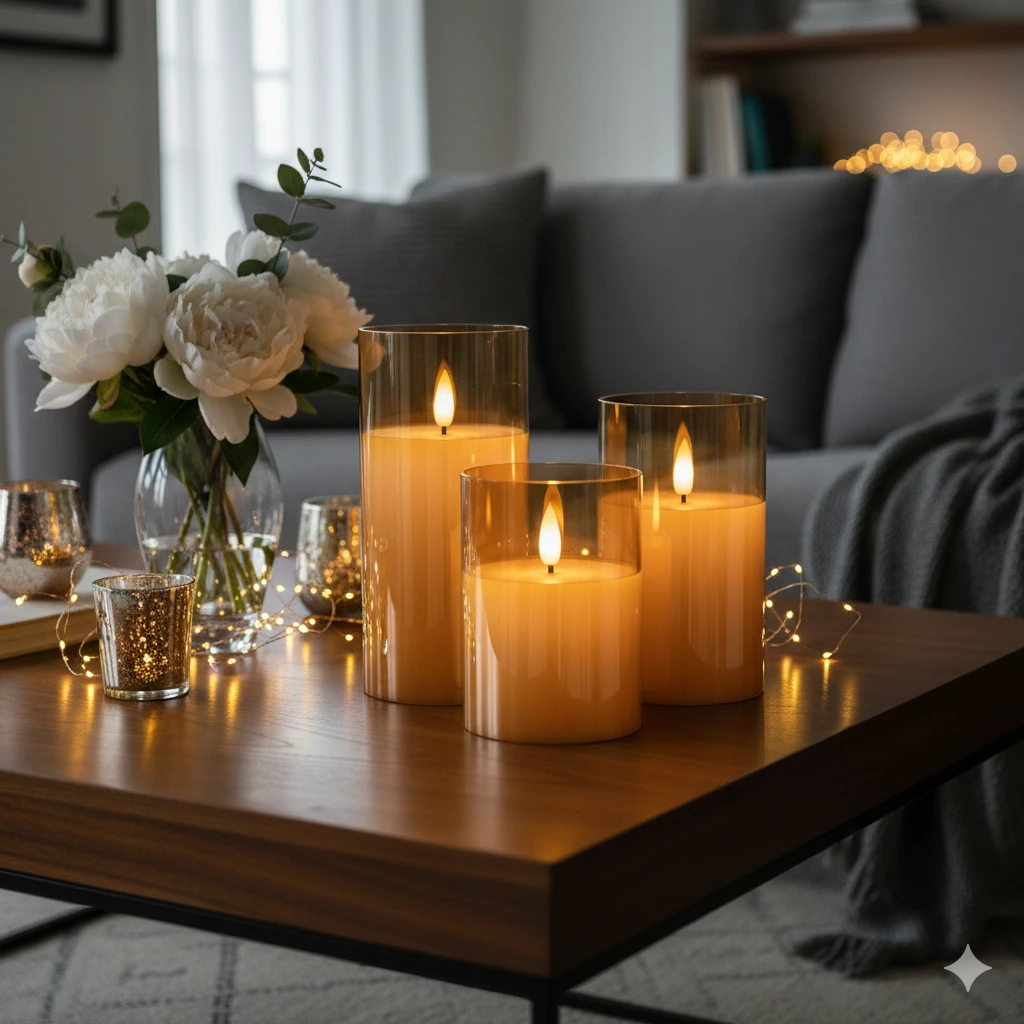 These battery-operated glass flameless candles bring an inviting golden glow to your living space. With real wax, remote control, and a built-in timer, they offer the charm of real candles without fire risks. Customers love their realistic flicker, elegant design, and energy efficiency.